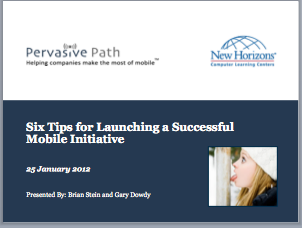 In conjunction with New Horizons Computing Learning Centers, Pervasive held an encore Webinar on “Lessons Learned: How to Avoid Mistakes in a Nascent Mobile Market.”
